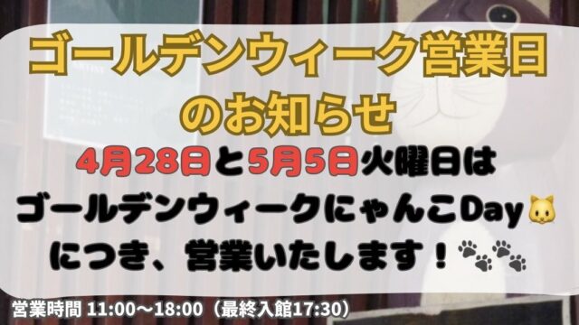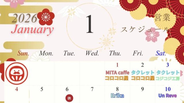 ※ 年末年始、ゴールデンウィーク、お盆などは、休日がイレギュラーになりますので、最新のお知らせや、インスタグラム、X、Facebook等でご確認ください。