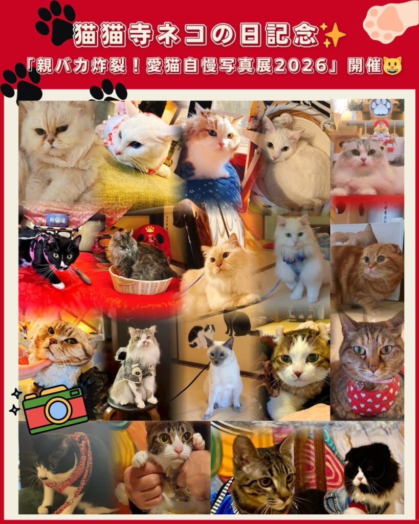 猫猫寺のインスタグラムにて、猫猫寺ネコの日記念✨「親バカ炸裂!愛猫自慢写真展2026」を開催いたします😺✨✨