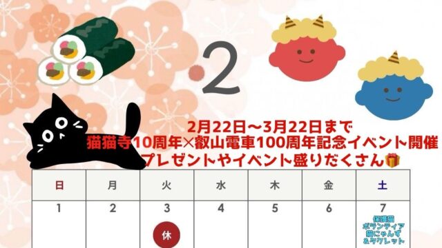 2月22日〜3月22日まで猫猫寺10周年✕叡山電車100周年記念イベント開催! 盛りだくさんなイベントやプレゼントを予定…